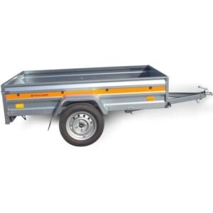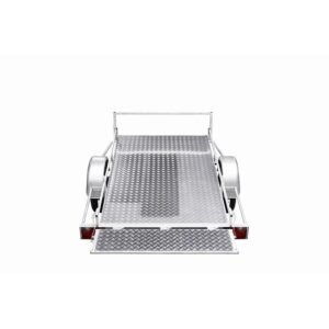 Les points forts de ce produit : – Plancher bois antidérapant. – 6 anneaux d’arrimage. – Fabriquée en France. Le plateau multi-usages 750 Kg dispose d’un châssis galvanisé à chaud avec plancher bois marine 15 mm antidérapant imputrescible. L’accès sur la remorque se fait par l’arrière en position basculé (le support de plaque d’immatriculation pivote…